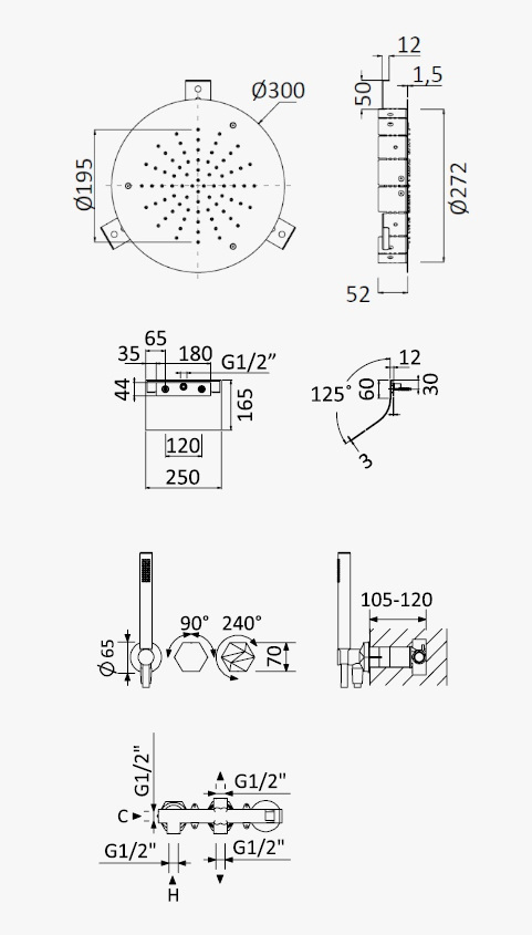 Bruma Utopia Zestaw natryskowy podtynkowy z deszczownicą sufitową, wylewką kaskadową i słuchawką Chrom 1835530CR