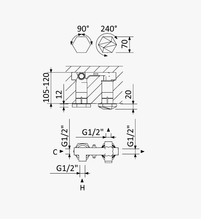Przełącznik 2-drożny, podtynkowy z elementem montażowym podtynkowym w komplecie.