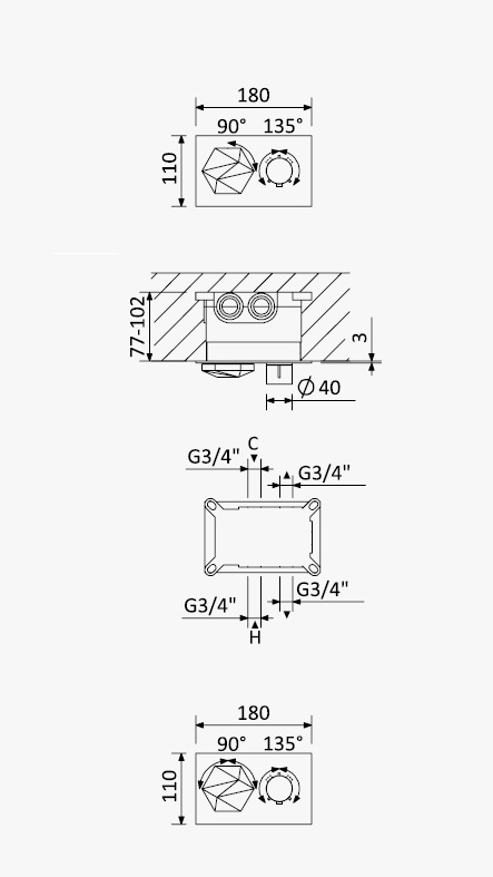 Przełącznik 2-drożny, podtynkowy z elementem montażowym podtynkowym w komplecie.