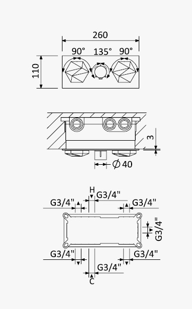 Przełącznik 5-drożny, podtynkowy z elementem montażowym podtynkowym w komplecie.