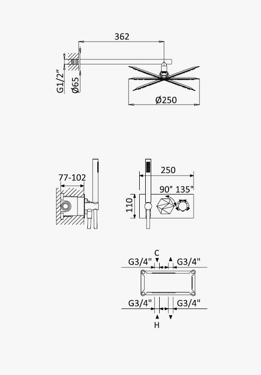 Średnica deszczownicy: 250 mm