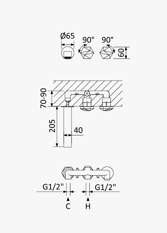 Bruma Utopia Bateria umywalkowa podtynkowa 3-otworowa z korkiem Click-Clack Chrom 1838710CR