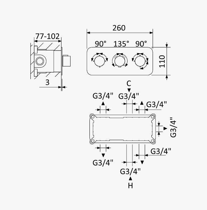 Głębokość montażu: 77 - 102 mm