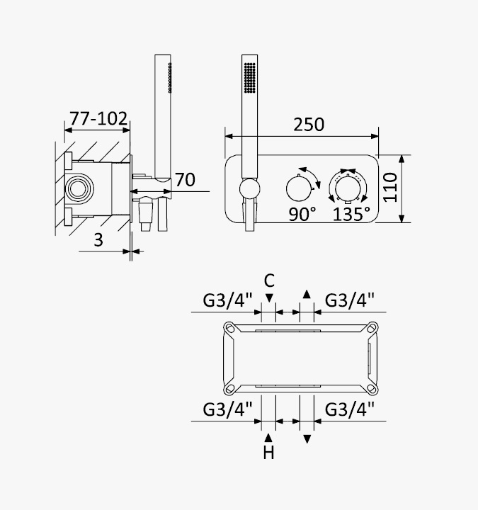 Bateria termostatyczna podtynkowa