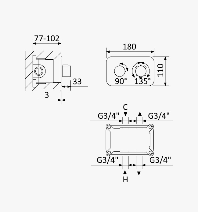 Bruma Venus Bateria wannowo-natryskowa termostatyczna podtynkowa 2-drożna Chrom 1844402CR