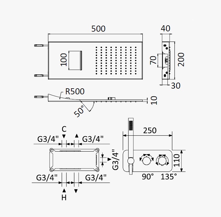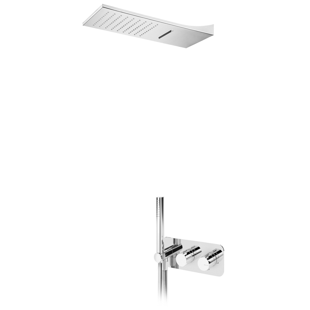 Bateria termostatyczna podtynkowa, z deszczownicą ścienną z funkcją kaskady i słuchawką prysznicową