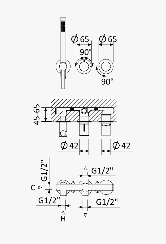 Bateria natryskowa podtynkowa 3-drożna