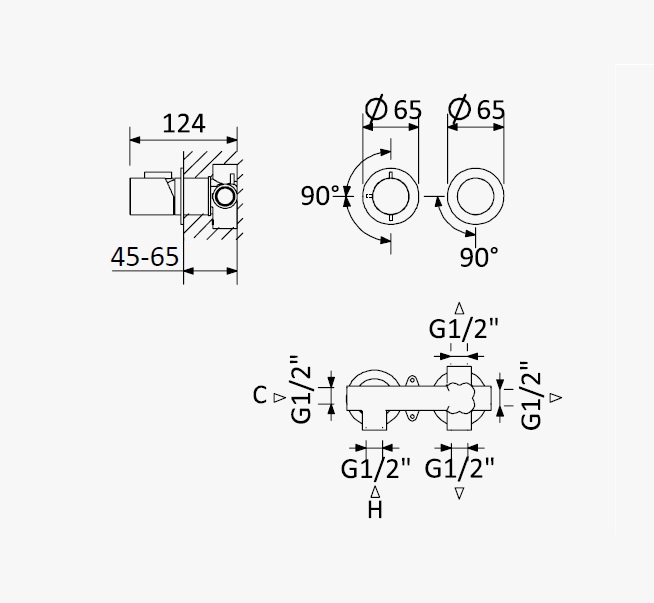 Głębokość montażu: 45 - 65 mm
