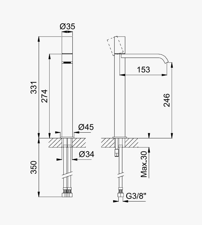 Wysięg wylewki: 153 mm