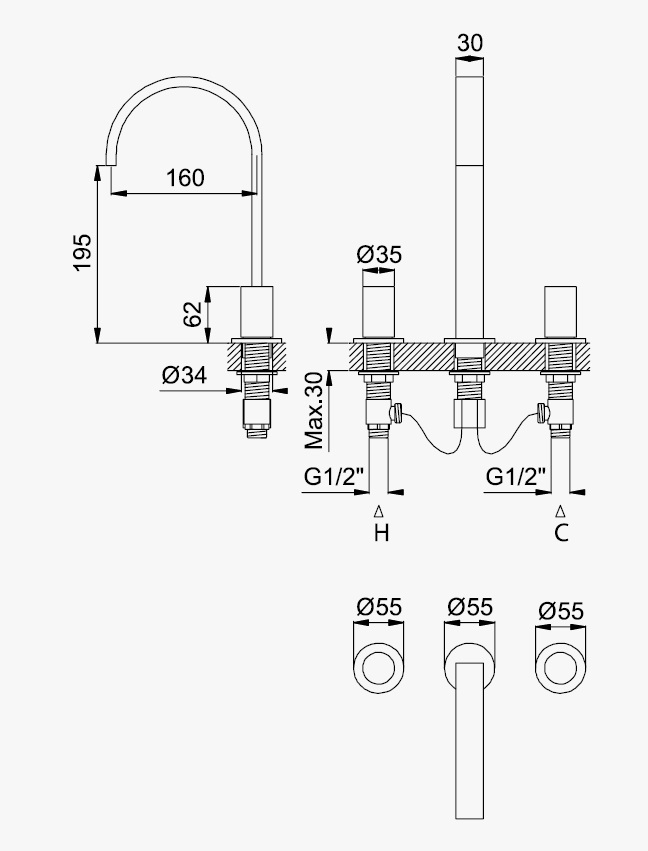 Bruma Avalon Bateria umywalkowa 3-otworowa z korkiem Click-Clack Chrom 1892707CR
