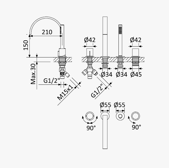 Wysokość wylewki: 150 mm