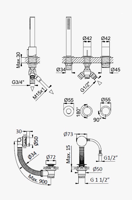 Długość odpływu: mex 900 mm