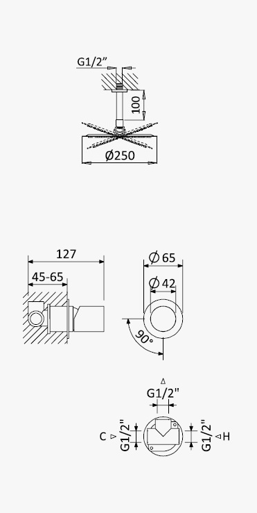 Bruma Avalon Bateria natryskowa podtynkowa z deszczownicą Ø 250 mm sufitową Chrom 1895621CR