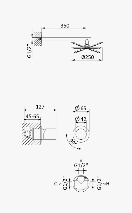 Bruma Avalon Bateria natryskowa podtynkowa z deszczownicą Ø 250 mm ścienną Chrom 1897621CR