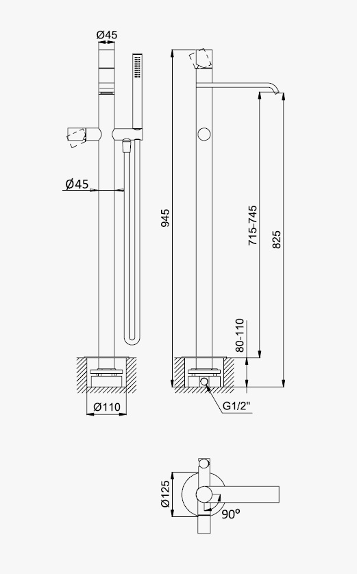 Bruma Avalon Bateria wannowo-natryskowa wolnostojąca ze słuchawką prysznicową Chrom 1898001CR
