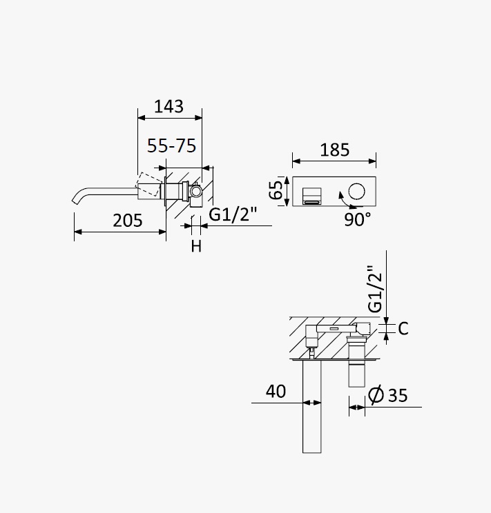 Bruma Avalon Bateria umywalkowa podtynkowa bez korka Chrom 1898201CR