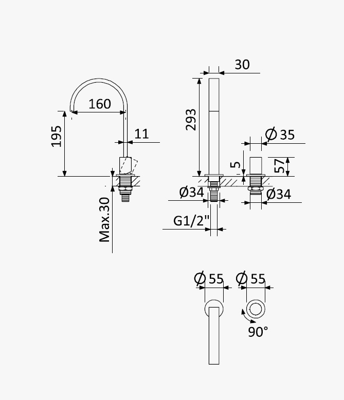 Bruma Avalon Bateria umywalkowa 2-otworowa bez korka Chrom 1898801CR