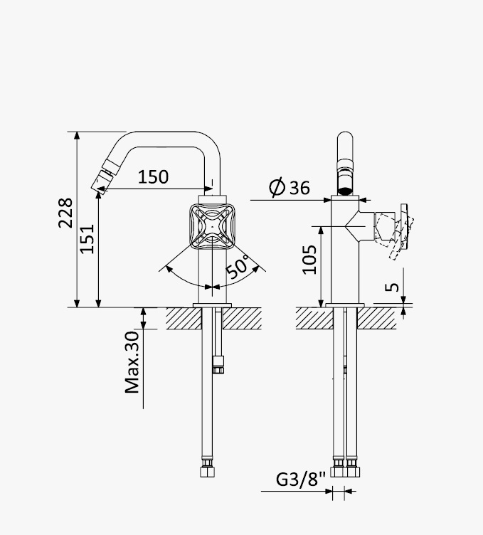 Wysięg wylewki: 150 mm