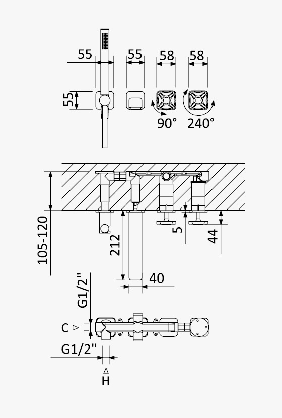 Bateria wannowo-natryskowa podtynkowa 4-otworowa