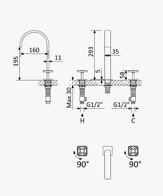 Bruma Navy Bateria umywalkowa 3-otworowa z korkiem Click-Clack Chrom 1902511CR