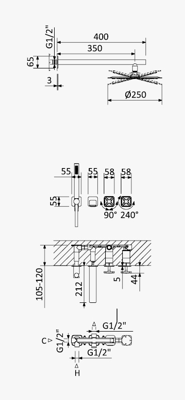 Bateria wannowo-natryskowa z deszczownicą i zestawem natryskowym