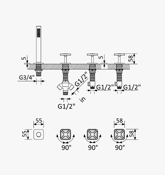 Bruma Navy Zestaw wannowo-natryskowy nablatowy z zestawem natryskowym Chrom 1905011CR