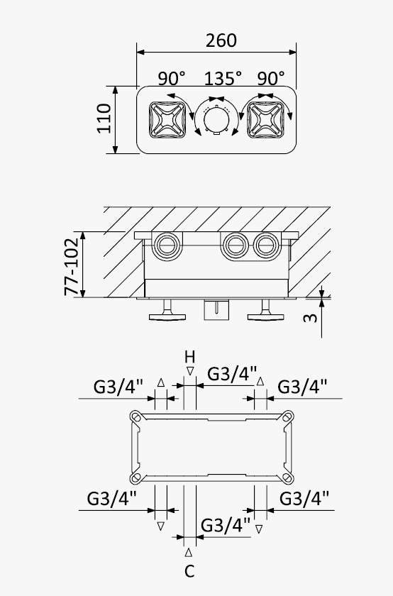 Głębokość montażu: 77 - 102 mm