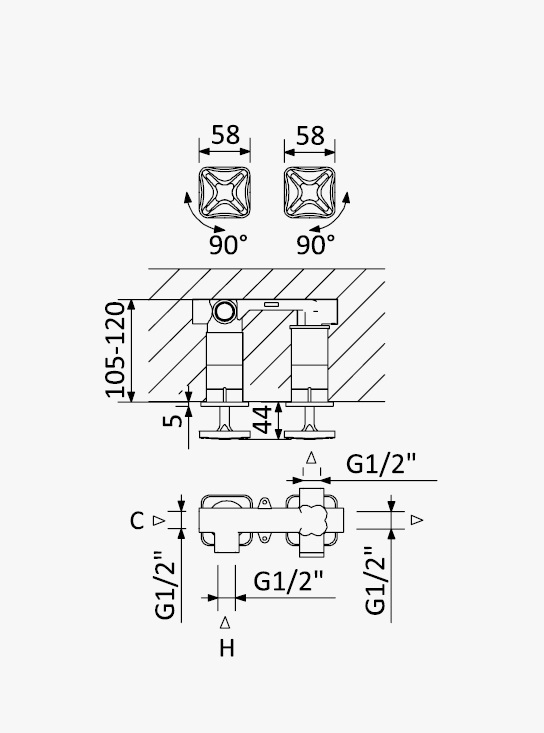 Mieszacz podtynkowy, 2-otworowy, 2 drożny