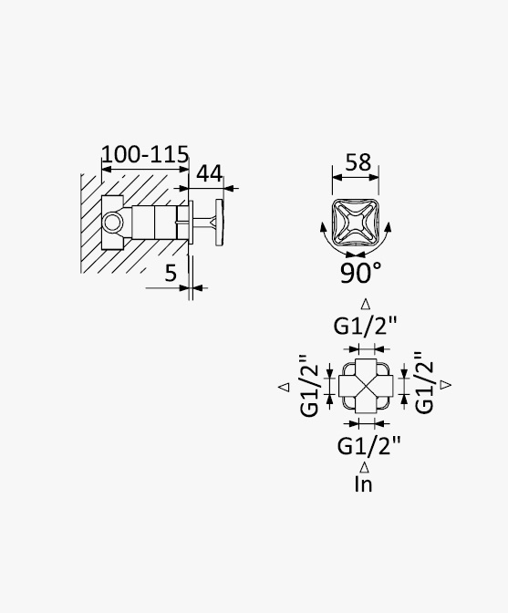 Bruma Navy Mieszacz podtynkowy z 3-wyjściami Chrom 1907031CR