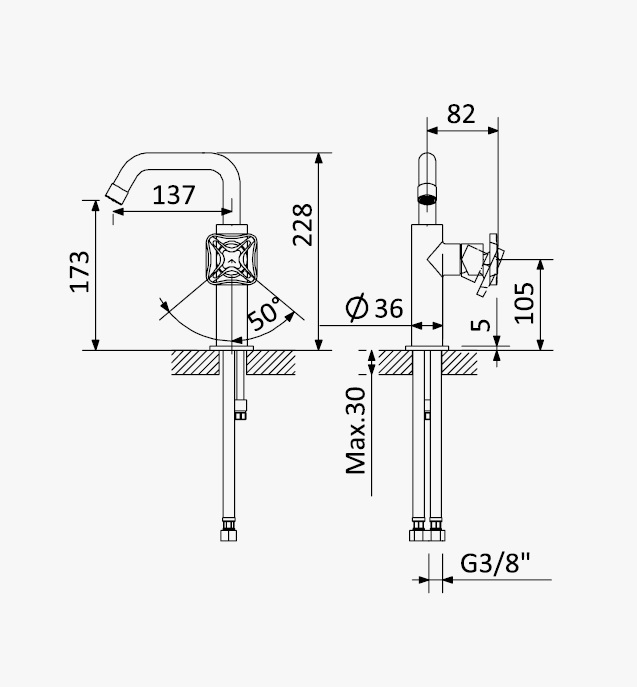 Bruma Navy Bateria umywalkowa stojąca z korkiem Click-Clack Chrom 1907111CR
