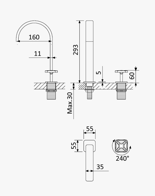 Bruma Navy Bateria umywalkowa 2-otworowa z korkiem Click-Clack Chrom 1908811CR