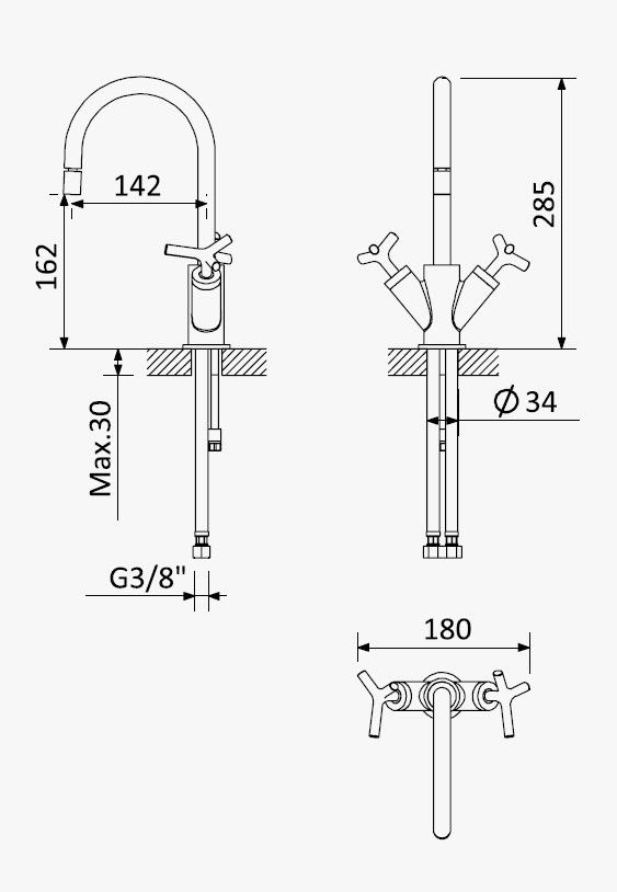 Bruma Genesi Bateria bidetowa 2-uchwytowa bez korka Chrom 1910201CR
