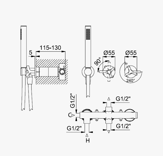 Bateria natryskowa 3-drożna podtynkowa ze słuchawką oraz przyłączem z uchwytem
