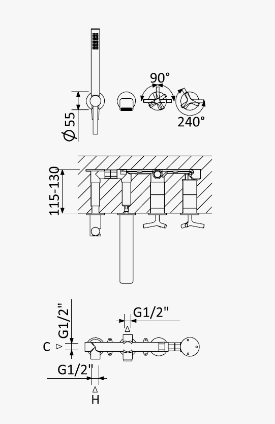 Głębokość montażu: 115 - 130 mm