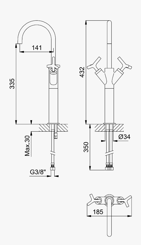 Bruma Genesi Bateria umywalkowa stojąca z korkiem Click-Clack Chrom 1912111CR