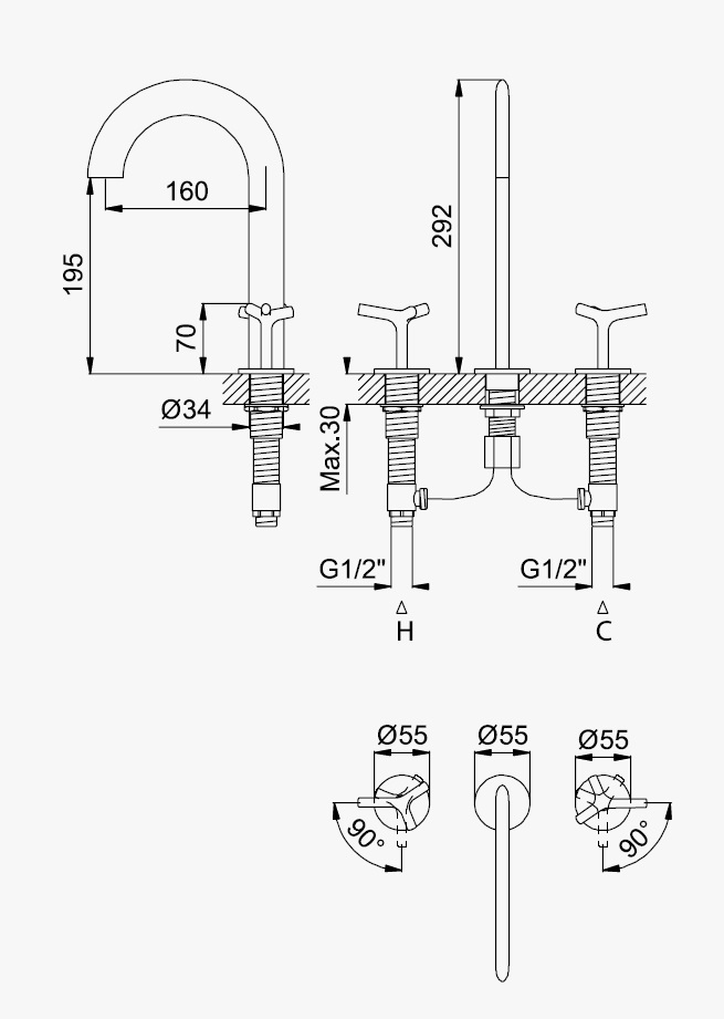 Bruma Genesi Bateria umywalkowa 3-otworowa z korkiem Click-Clack Chrom 1912501CR