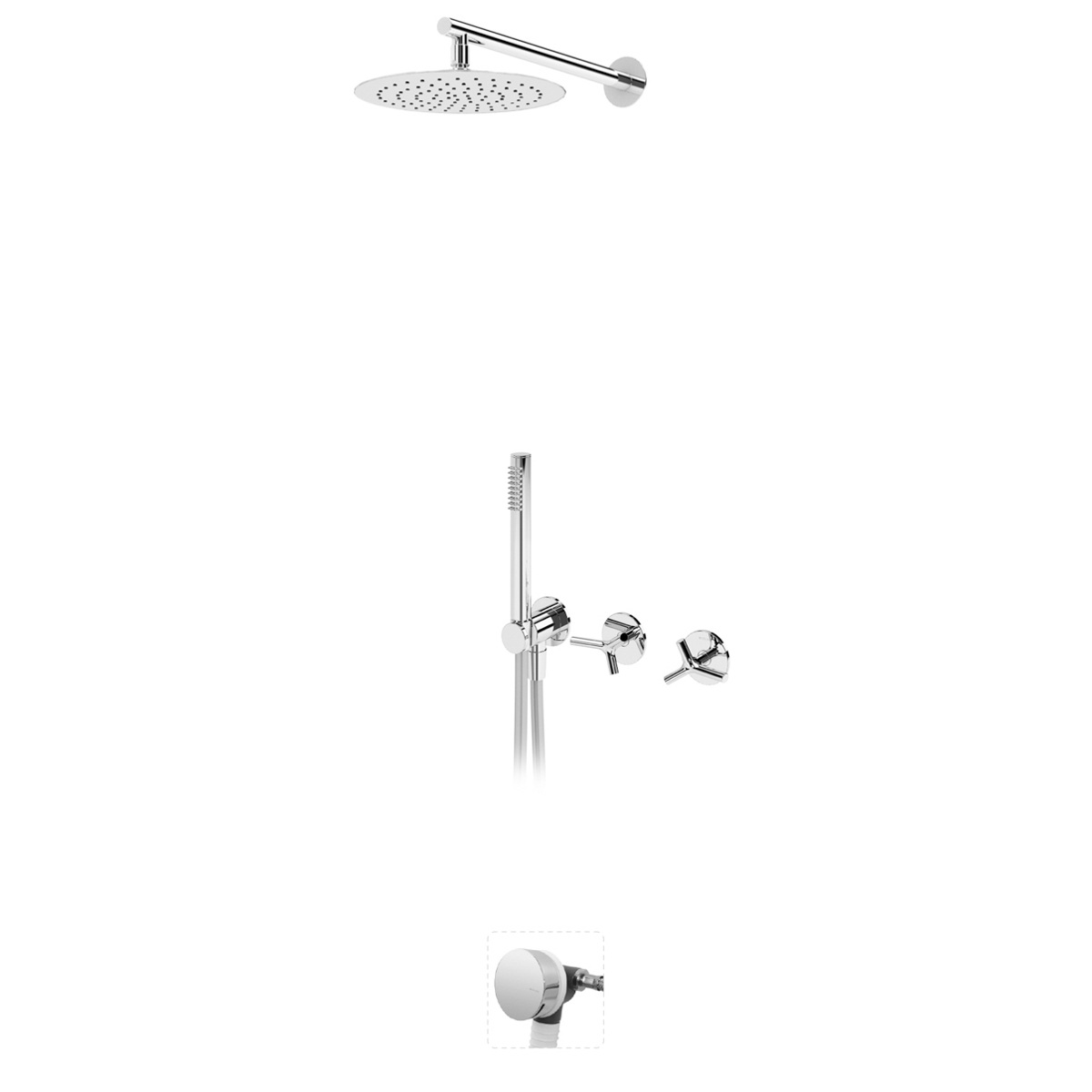Bruma Genesi Zestaw wannowo-natryskowy podtynkowy z deszczownicą ścienną Ø 250 mm ze słuchawką prysznicową i napełnianiem przez przelew Chrom 1913521CR