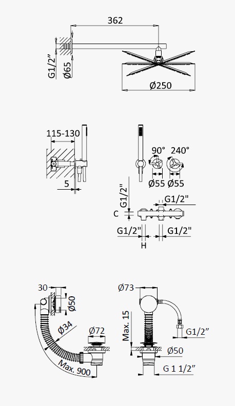Długość odpływu: max 900 mm