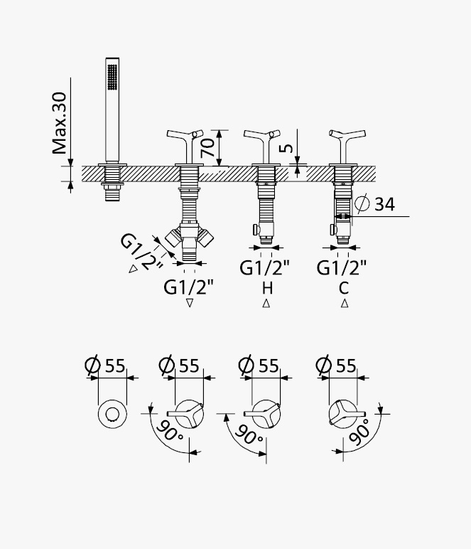 Bateria natryskowa nablatowa, ze słuchawką prysznicową