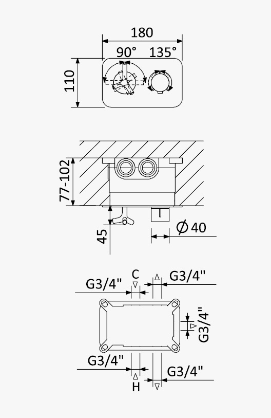 Głębokość montażu: 77 - 102 mm