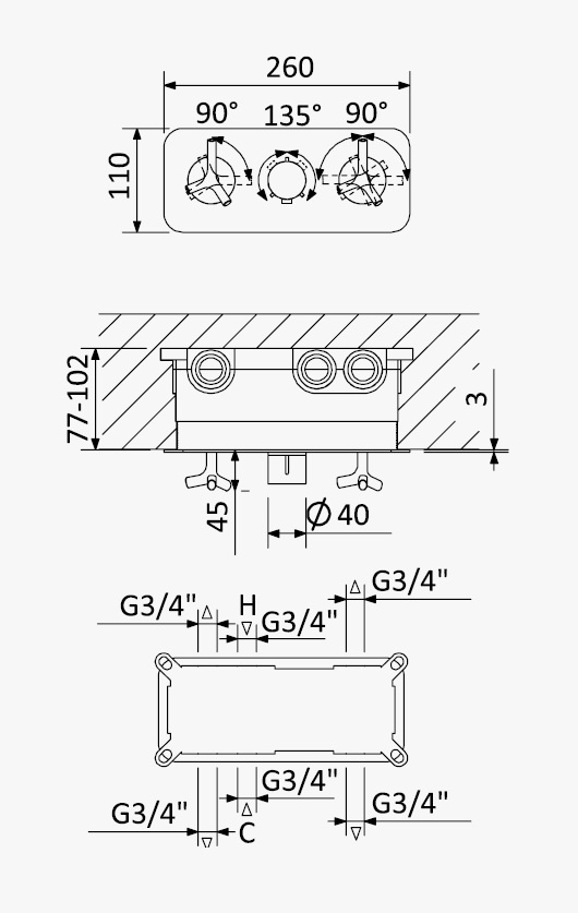 Bateria natryskowa podtynkowa termostatyczna z 4 wyjściami