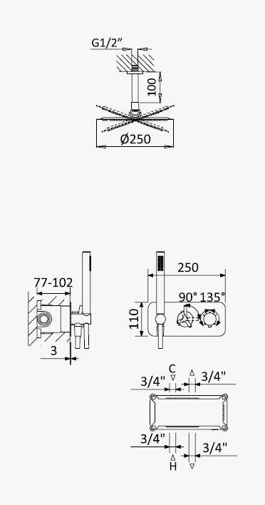 Bruma Genesi Zestaw prysznicowy podtynkowy termostatyczny z deszczownicą sufitową Ø 250 mm i słuchawką prysznicową Chrom 1917921CR