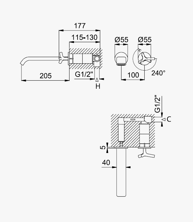 Głębokość montażu: 115 - 130 mm