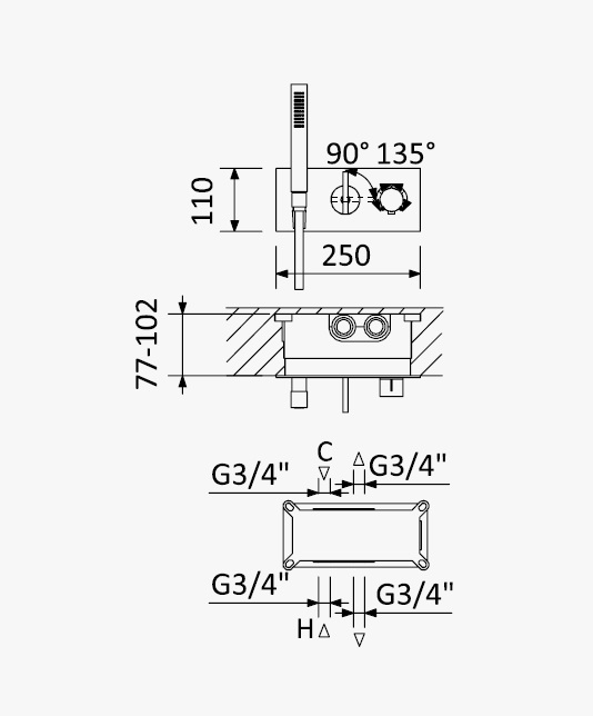 Bateria termostatyczna natryskowa podtynkowa ze słuchawką i przyłączem z uchwytem