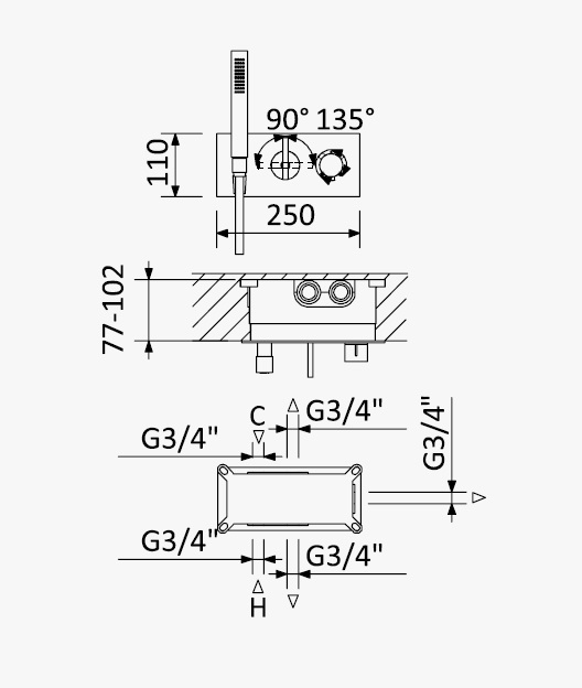 Bateria termostatyczna natryskowa podtynkowa ze słuchawką i przyłączem z uchwytem