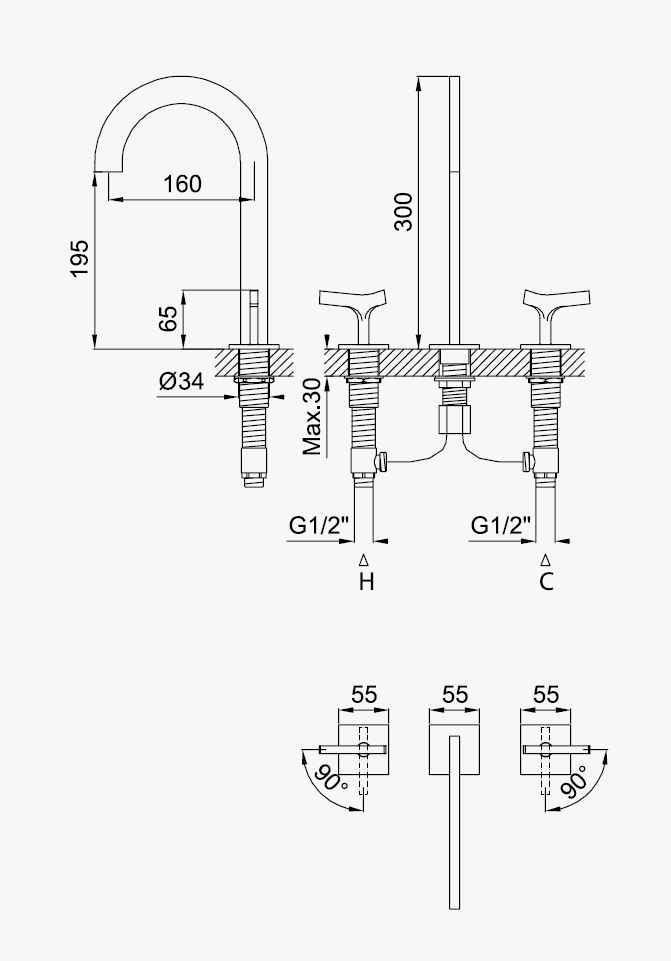 Bruma Royale Bateria umywalkowa 3-otworowa z korkiem Click-Clack Chrom 1922541CR