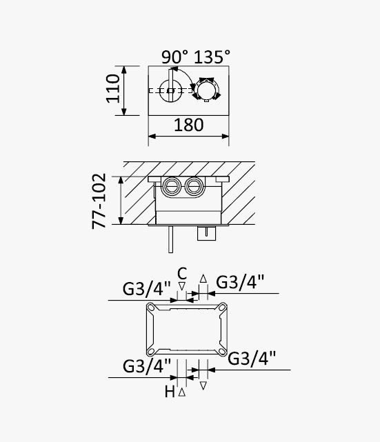 Bateria termostatyczna natryskowa podtynkowa, 2-drożna