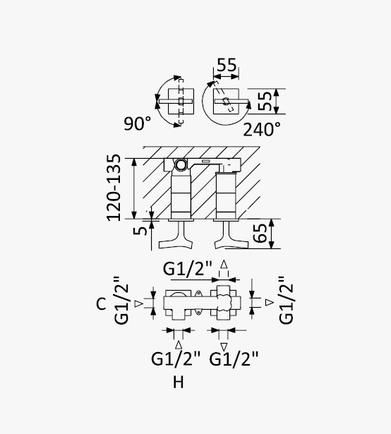 Bruma Royale Mieszacz podtynkowy 3-drożny Chrom 1926531CR