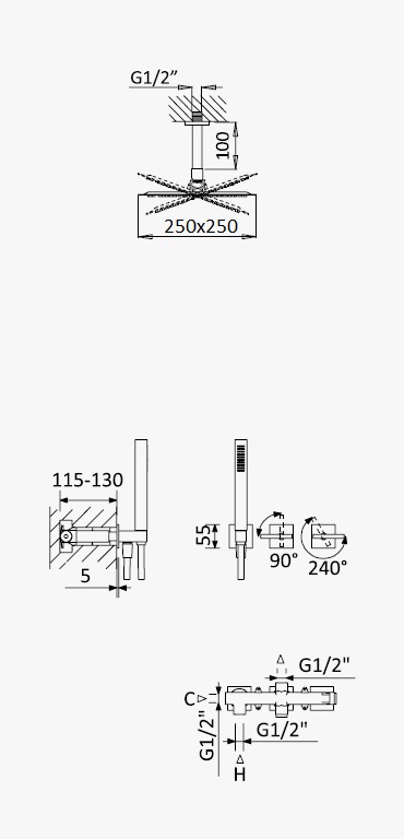 Bruma Royale Zestaw natryskowy podtynkowy z deszczownicą sufitową 250x250 mm i słuchawką prysznicową Chrom 1927521CR