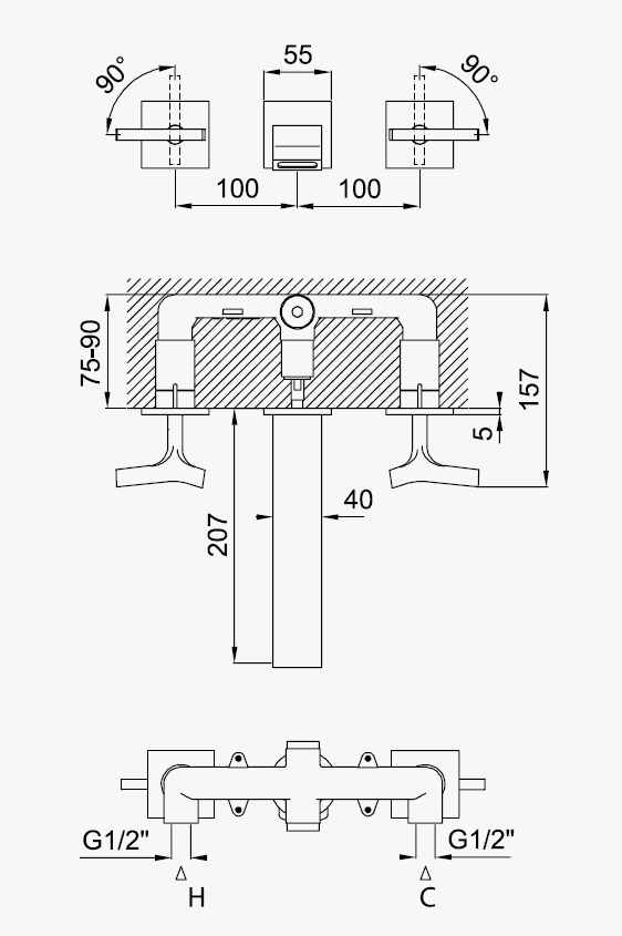 Bruma Royale Bateria umywalkowa podtynkowa 3-otworowa z korkiem Click-Clack Chrom 1928641CR